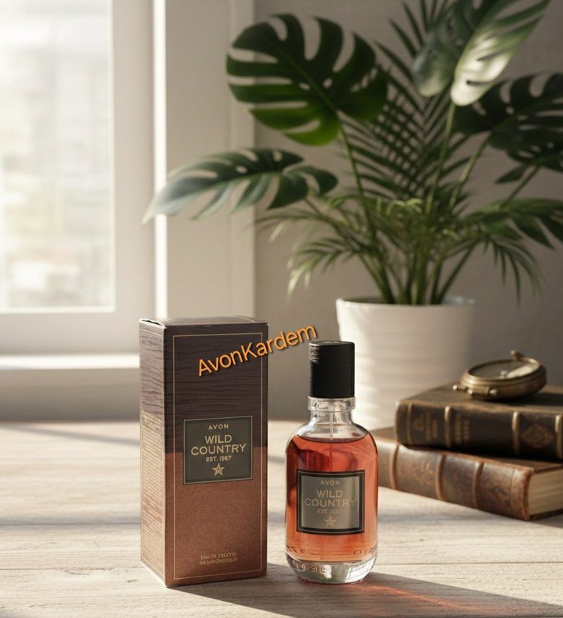 Avon Wild Country erkek parfümü, koyu kahverengi şişesi ve modern klasik tasarımıyla vintage bir koku sunar. Ambalajı şık bir tarz yansıtır.