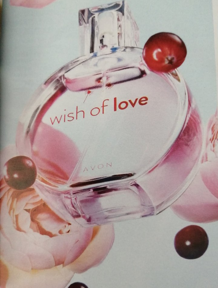 AVON Wish of Love, yuvarlak şeffaf şişede, yumuşak pembe renkte sıvıyla sunulan kadın parfümüdür. Çiçeksi ve meyvemsi notalarla romantik bir koku sağlar.