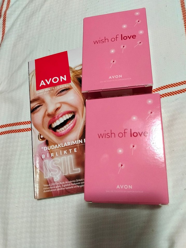 2 adet Avon Wish of Love kadın parfümü, pembe kutusunda zarif tasarımla sunulur. Romantik bir koku deneyimi sağlar.