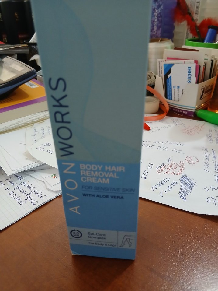 AVON Works vücut kılları temizleme kremi, aloe vera ile cildi yatıştırır ve vücut ile bacaklardaki tüyleri giderir. Hassas ciltlere uygundur.