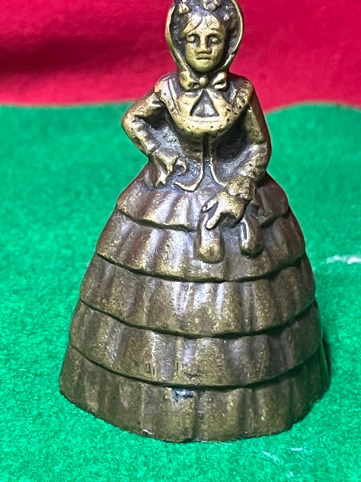 Kat kat elbise ve başlık giymiş kadın figürini, koyu altın renginde ve detaylı yüz ifadeleri ile tasarlanmıştır.