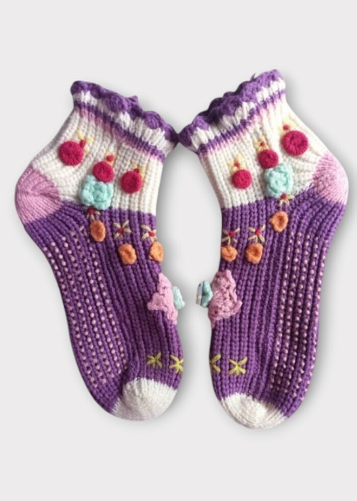 Avrupa'dan aldığım yeni süslü çorap. Akrilik malzeme, tabanı kaydırmaz. Beden bilmiyorum, cetvelle uzunluğu verildi.