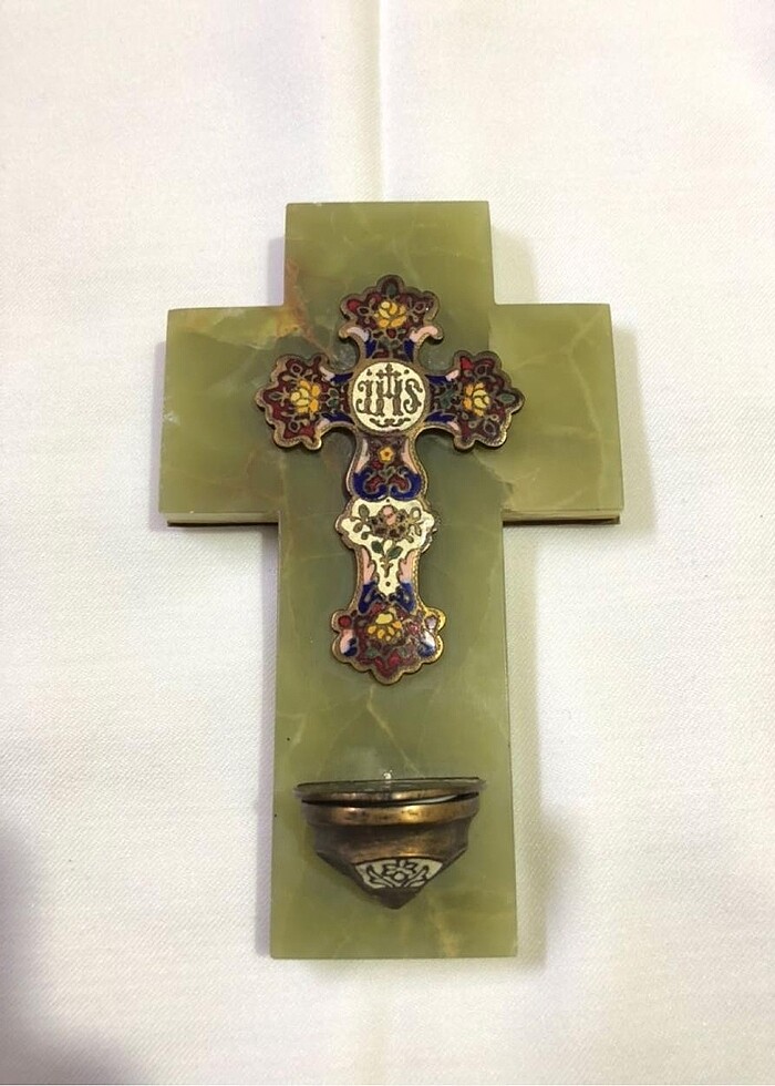 Avrupa yapımı, oniks taş üzeri, bronz ve mine işçilikli koleksiyonluk haç. 16 x 10 cm ölçülerindedir