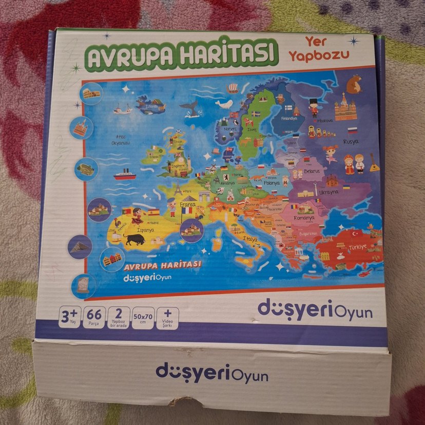66 parçalı, 50x70 cm boyutunda renkli Avrupa Haritası yer yapbozu. 3 yaş ve üzeri çocuklar için uygundur. Eğitici ve öğretici bir oyun.