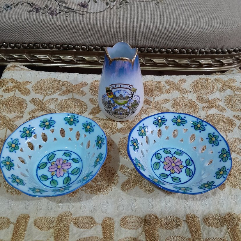 Avrupa Mavi Vazo ve Dekoratif Ajurlu Kaseler