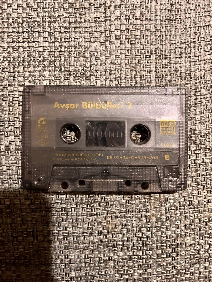 "Avşar Bülbülleri 2" yazılı, şeffaf koyu renkte kaset. Türk müzik kasetleri arasında klasik bir üründür.