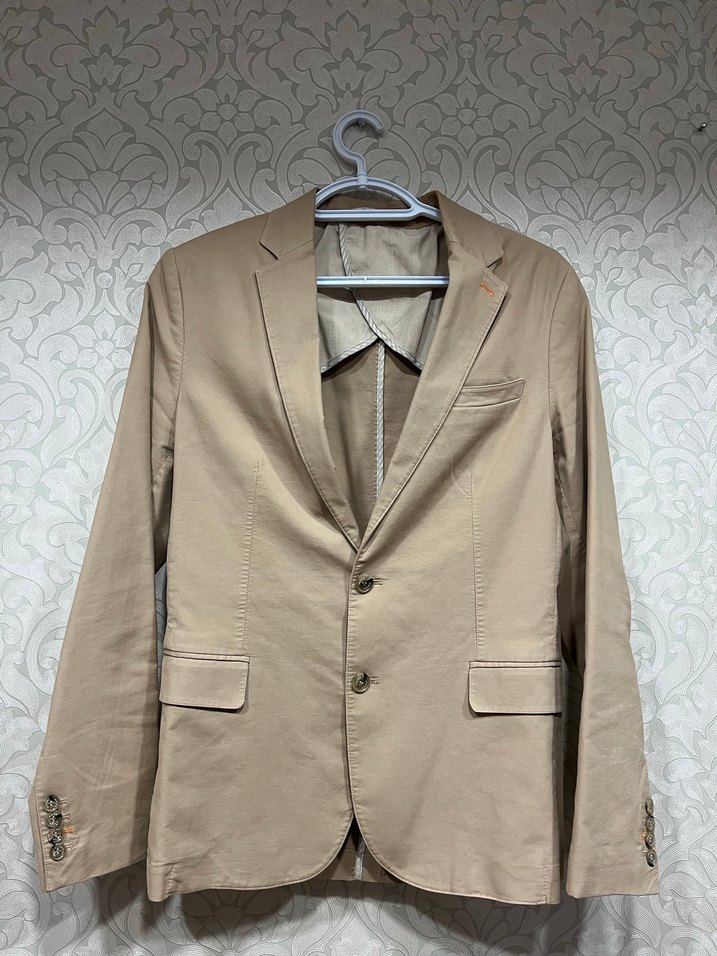 Bej renkte, düğmeli, klasik yaka ve uzun kollu erkek takım elbise ceketi. Ofis kullanımı için uygun, normal kesim ve pastel tonlarda şık bir parça. Avva marka hiç bir sıkıntısı yok