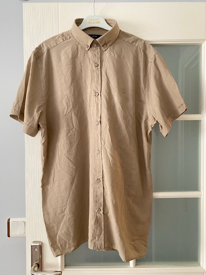 avva marka kısa kollu erkek gomlek sıfırdır hiç kullanışmamıştır Bej renkli, keten kumaştan, kısa kollu, yakalı ve düğmeli erkek gömleği. Rahat kesimi ve normal boyuyla günlük sokak stiline uygundur.