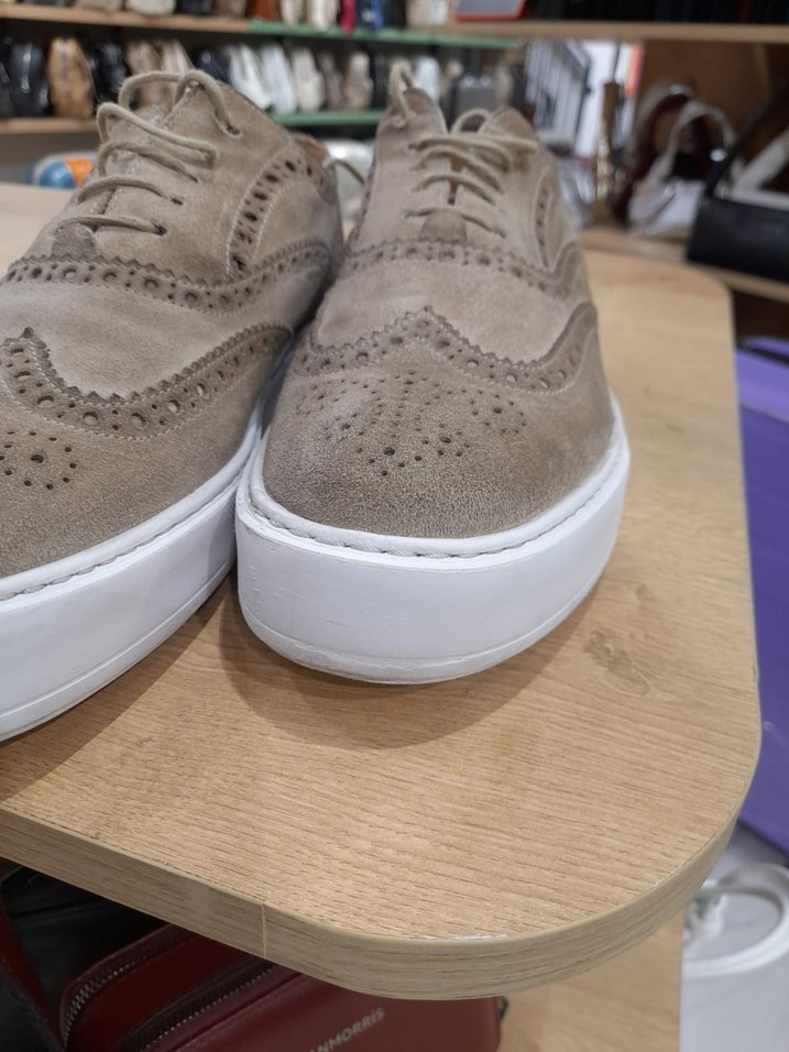 Nubuk deri spor klasik uyumlu şık ayakkabı bej renk