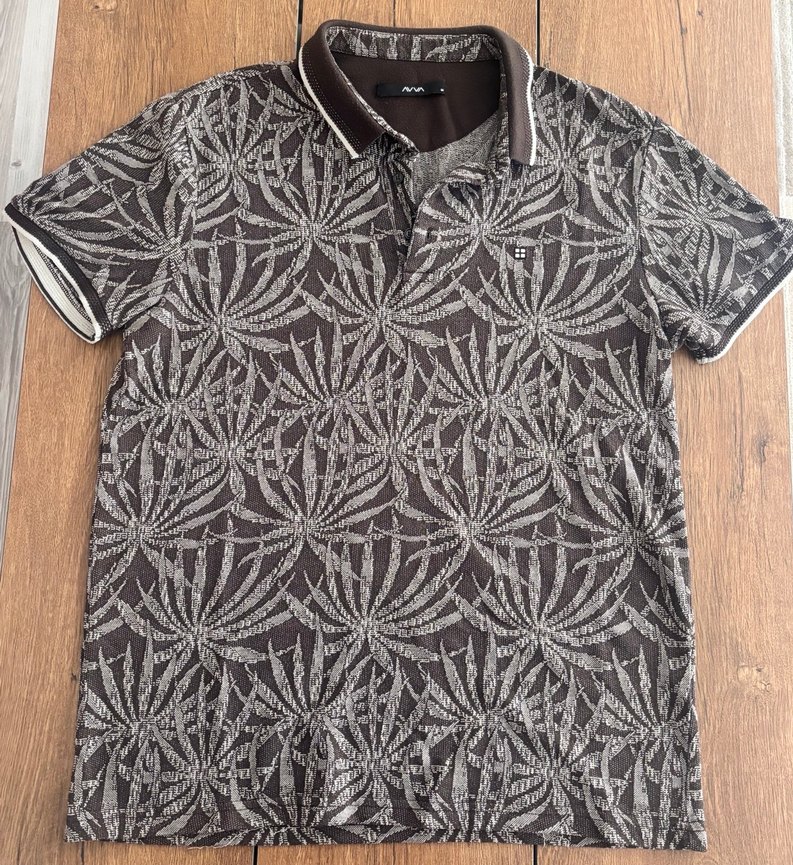 Erkekler için düğmeli, kısa kollu, desenli kahverengi ve gri polo tişört. Rahat kesimli ve tekstil kumaştan üretilmiştir. Kısa kollu, yakalı, düğmeli önü olan erkek polo tişört. Rahat kesimiyle günlük sokak stiline uygundur. Tam boy: 65cm, 2 Kol Arası genişlik: 51cm, kol genişliği:18cm
