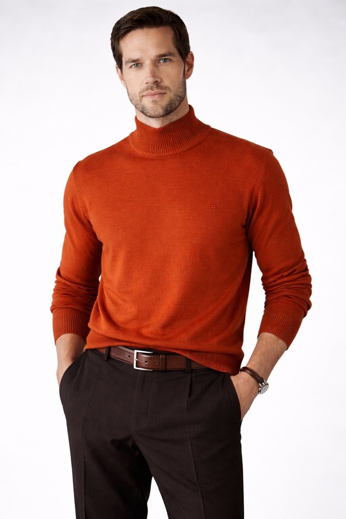 Avva Erkek Kiremit yarım Balıkçı Yaka Triko kazak