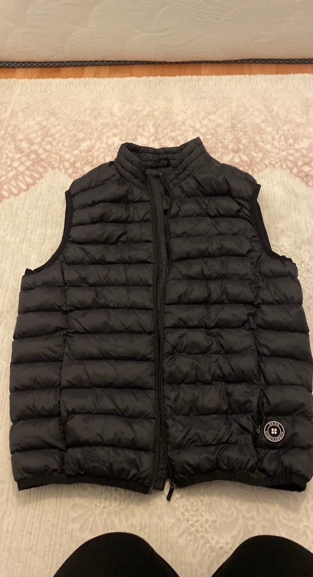Erkek ince siyah yelek çok hafif kol kısmında pütürlük vardır fotoğrafta da mevcut yok gibi duruyor X large beden yırtık sökük yoktur