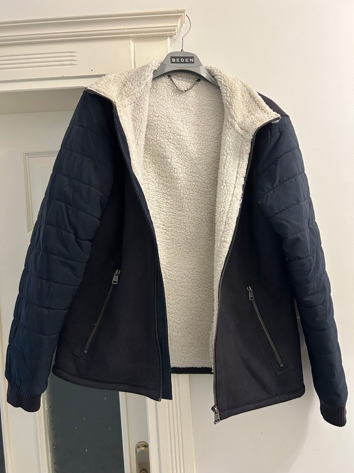Avva mavi tonlu, fermuarlı ve notched lapel yakalı erkek midi boy mont. Uzun kollu, rahat ve sıcak tutan iç astarlı, sokak stiline uygun şık bir model.