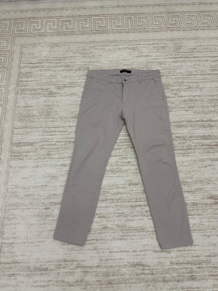 Gri renkte, regular fit ve normal boyda erkek pantolonu. , desen içermeyen rahat ve şık bir tasarım. tertemizdir hicbir kusuru yok