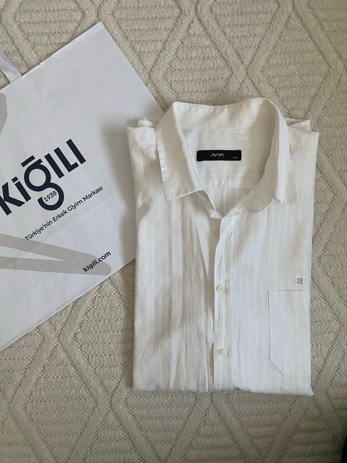 Ürün temiz ve sayılı kullanıldı. Hiçbir hasarı yok. Kilo değişiminden dolayı giyilmesi mümkün olmadığından satıyorum. Etiket detayından görebileceğiniz gibi gömlek %100 pamuk. Omuzdan itibaren boyu 72cm, iki koltuk altı arası mesafe 60cm, gömleğin bitiş kısmında eni 60cm, omuzdan itibaren kol uzunluğu 70cm, bilek kısmı eni 12cm #gömlek #beyazgömlek #avva #avvagömlek