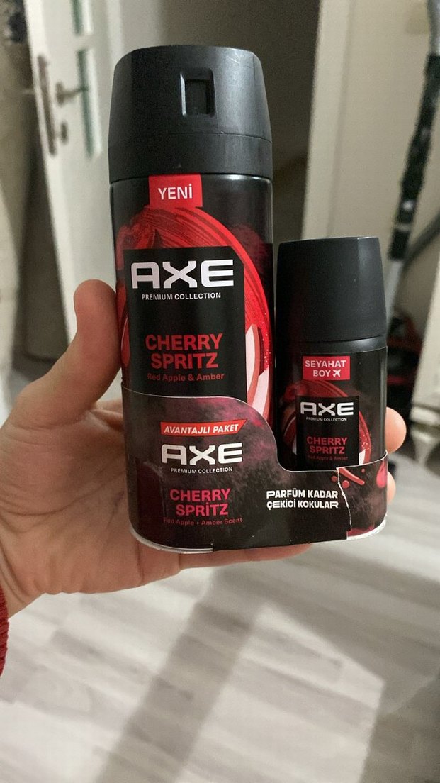 AXE Cherry Spritz erkek deodorant seti, kırmızı elma ve amber kokusuyla parfüm kadar kalıcı ferahlatıcı koku sunar.
