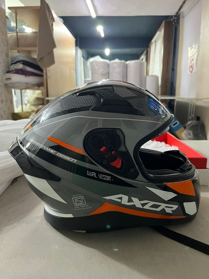 Camı mevcut temizlerken çekildiği için fotoğrafta öyle L xl uyumlu sıfır gibi Gri baskılı, çift vizörlü ve cırt cırtlı kapamalı kauçuk malzemeden yapılmış biker motosiklet kaskı. Sokak stili ve rock punk havası için uygundur. ️