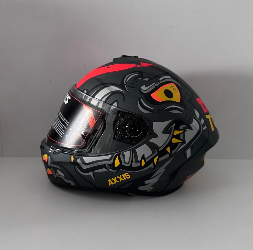 Sıfır ve kutuludur. XL bedendir. Ölçüsü, 61-62 cm’dir. Yedek siyah vizör hediyelidir. #axxis #dinotoon #kask #helmet