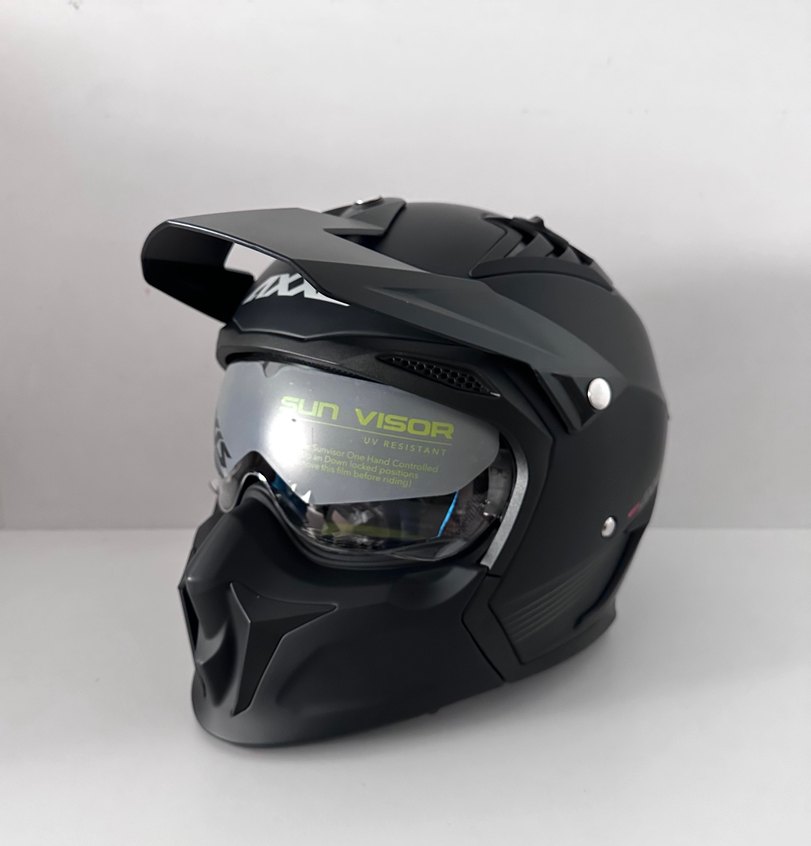 Sıfır ve kutuludur. L bedendir. Ölçüsü, 59-60 cm’dir. Yedek şeffaf vizör hediyelidir. #axxis #hunter #siyah #matsiyah #modüler #kask #helmet