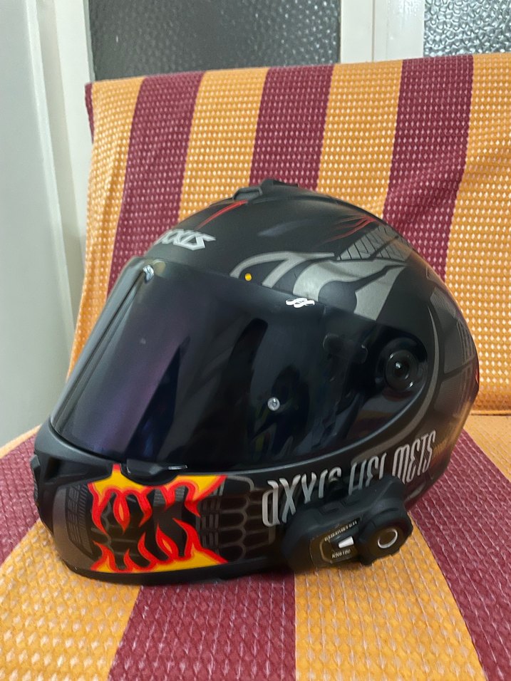 M beden siyah baskılı motosiklet kaskı İntercom üzerinde VERİLMEYECEK.!!! Kask tertemiz 3 ay kullanıldı. Yedek şeffaf vizör yanında hediye edeceğim. Ürün İzmir’de