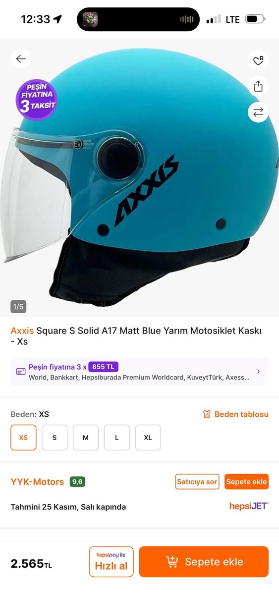 Axxis Square S Solid A17, mat mavi yarım motosiklet kaskı. Renkli baskılı tasarım, şeffaf vizör ve cırt cırtlı bant ile güvenli uyum sağlar. Dayanıklı kauçuk malzemeden üretilmiştir. ️ iki ay kullandım hiç kaza yapmadık düşmedi yani fakat motorun altındaki bagaj kısmında koymaktan ötürü çizikler oluştu tekliflere açığım tabi.