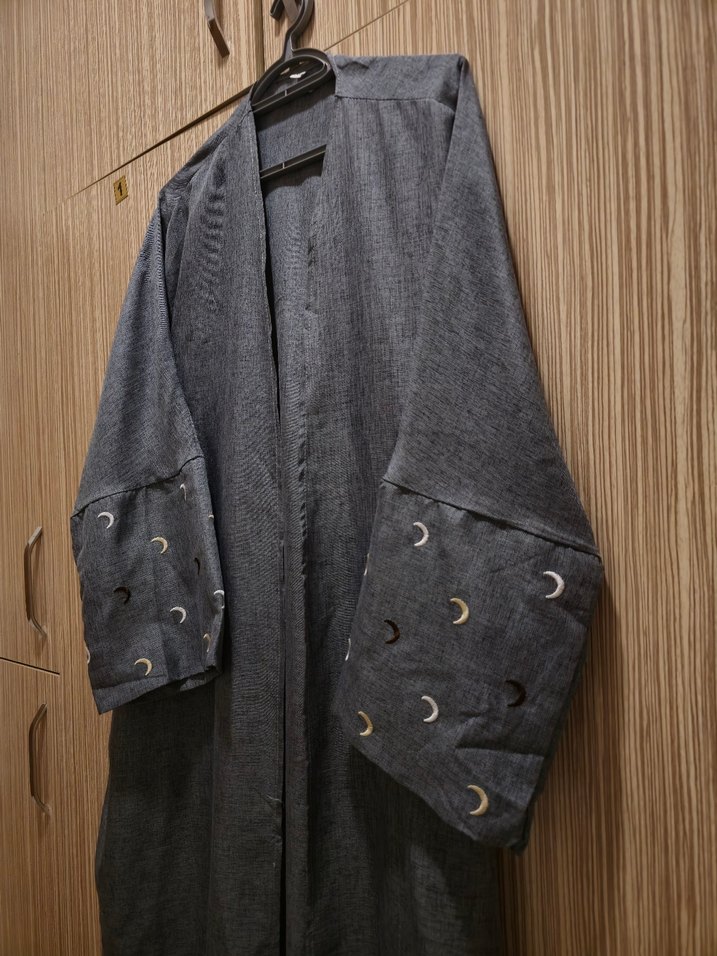 yurtdışı ürünüdür kolları ay nakışlı önü açık bir abaya modelidir kombinleyemediğim için satıyorum