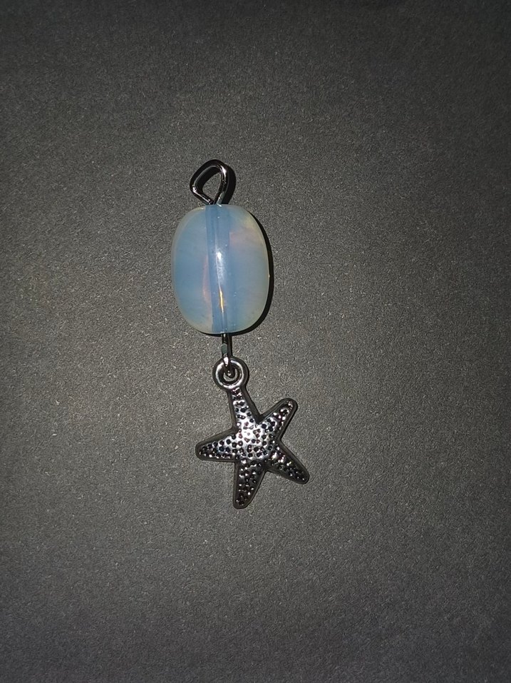 Parlak ay taşı boncuk ve gümüş deniz yıldızı figürlü kadın charm, bohem tarzı ve plaj kullanımı için uygundur.