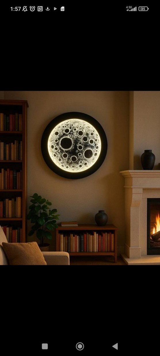 Kenarında parlak LED ışık bulunan, detaylı ay yüzeyli kendim yapıyorum