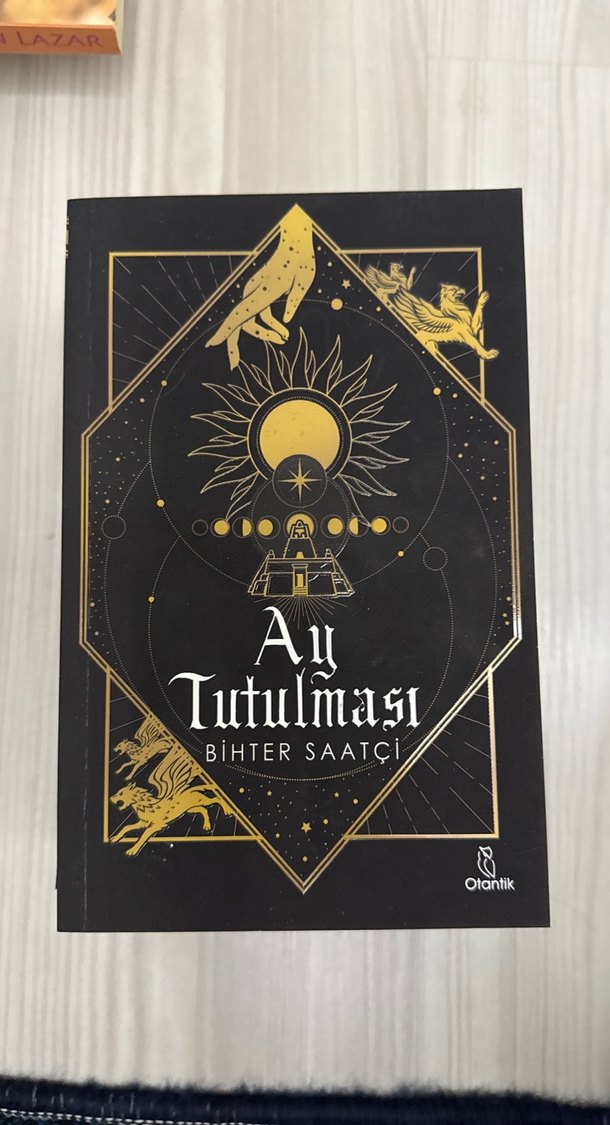Ay Tutulması, Bihter Saatçi tarafından yazılmış, güneş, ay evreleri ve mitolojik figürler içeren mistik bir kapak tasarımına sahip roman.