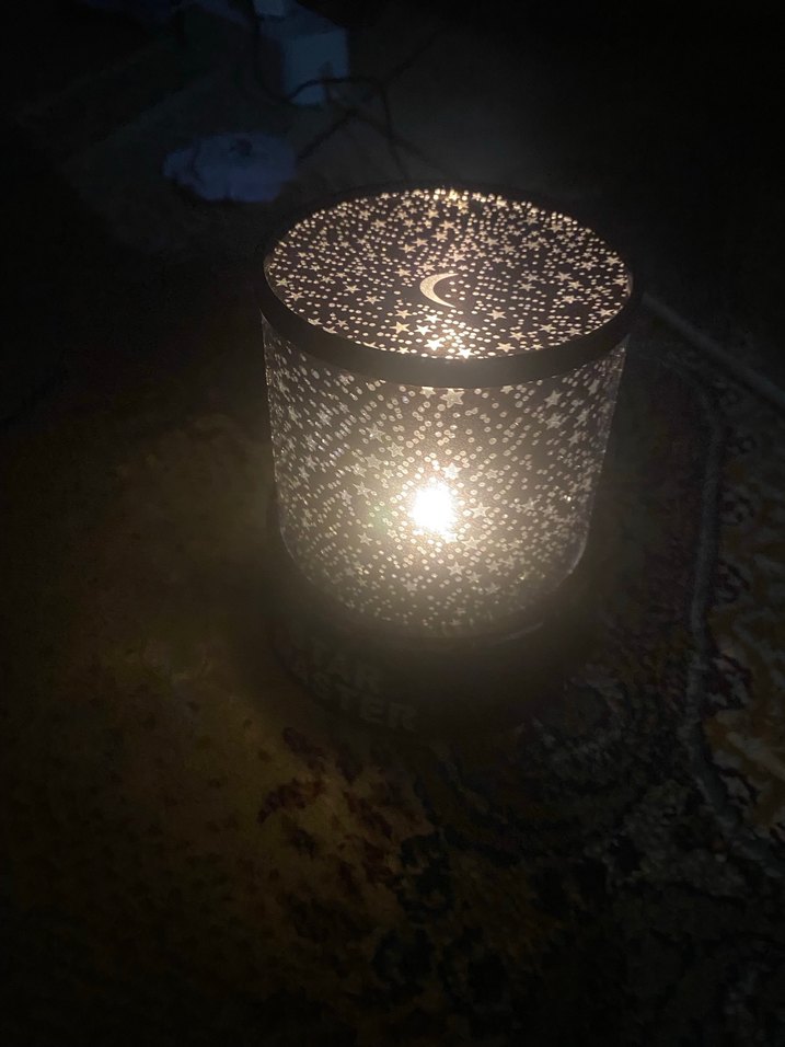 Ay ve yıldız desenli siyah mumluk, yumuşak ve dekoratif ışık efekti sağlar. Ortam aydınlatması için uygundur. ️