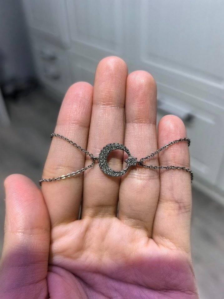 Ay yıldız gümüş renkte bileklik, bir kaç kez kullandım kararma vs olmadı