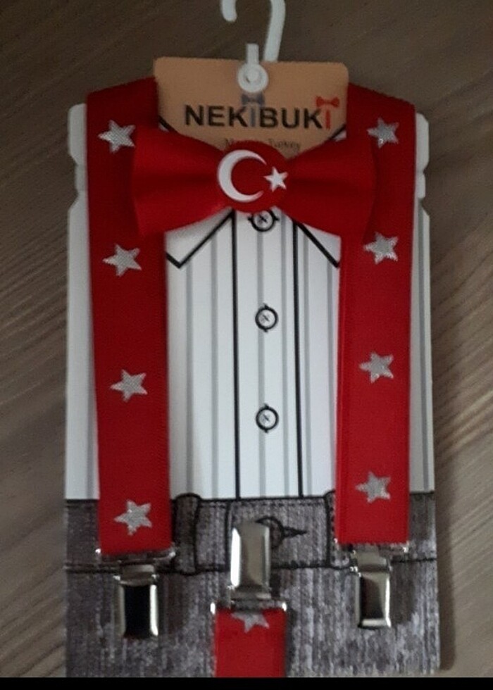 Ay yıldızlı çocuk pantalon askısı ve papyon takım