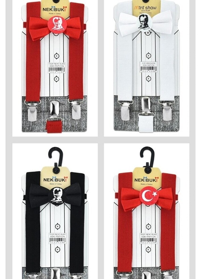 Ay yıldızlı ve atatürklü çocuk papyon ve pantalon askısı takım