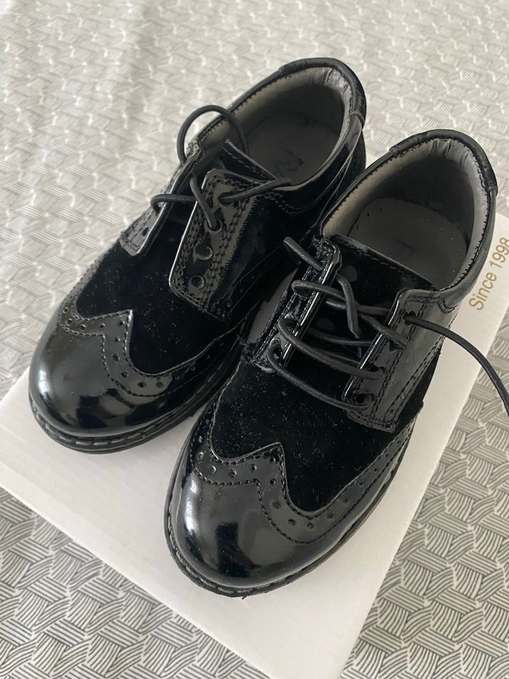 Parlak siyah renkte, klasik ve gotik tarzda erkek çocuk özel gün ayakkabısı, dayanıklı kauçuk malzemeden üretilmiştir. Hıc giyilmedi kutusuyla