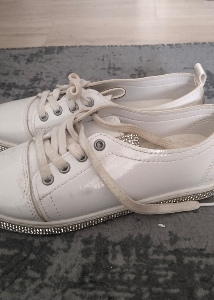36 numara beyaz yanları parlak rugan ayakkabı düğünümde giydim 1 kez