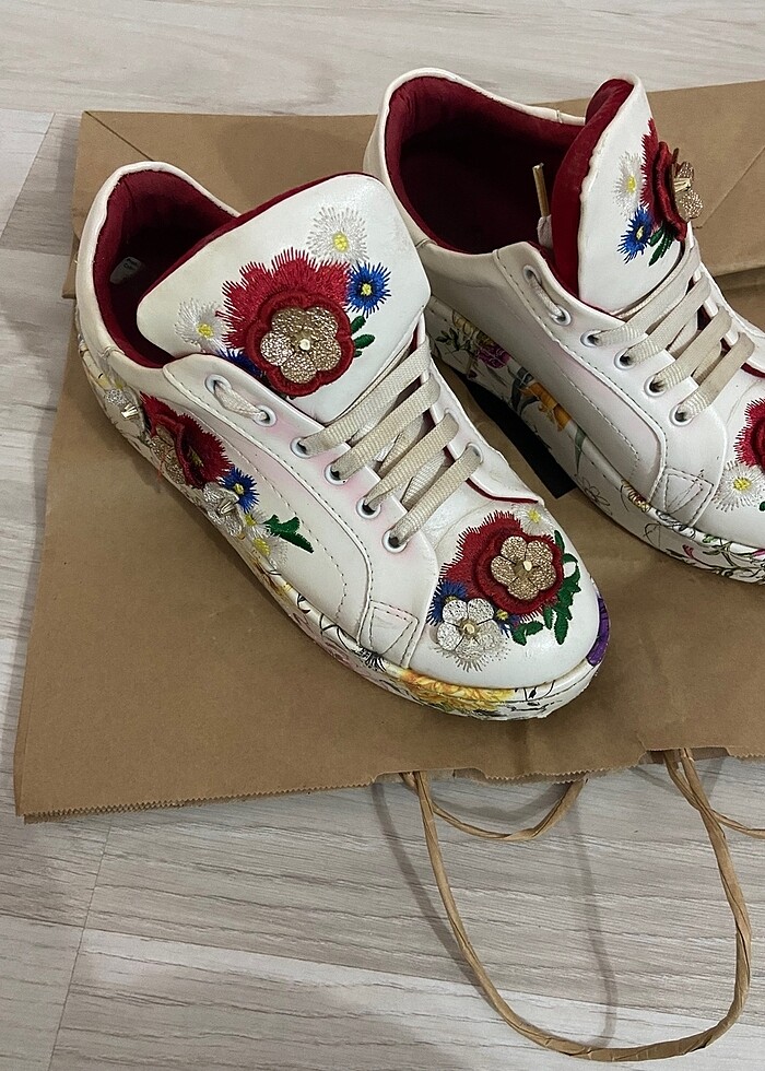 Çiçek desenli spor ayakkabı resimlerde belli oluyor bağcık yerinde hafif pembelik var başka bir sorunu yoktur 38 numara