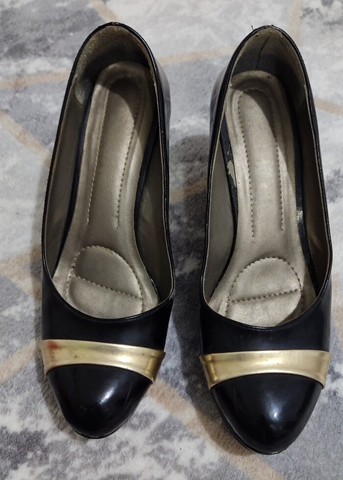 39 numara az kullanılmış platform tabanlı iki renk rugan gold ayakkabı