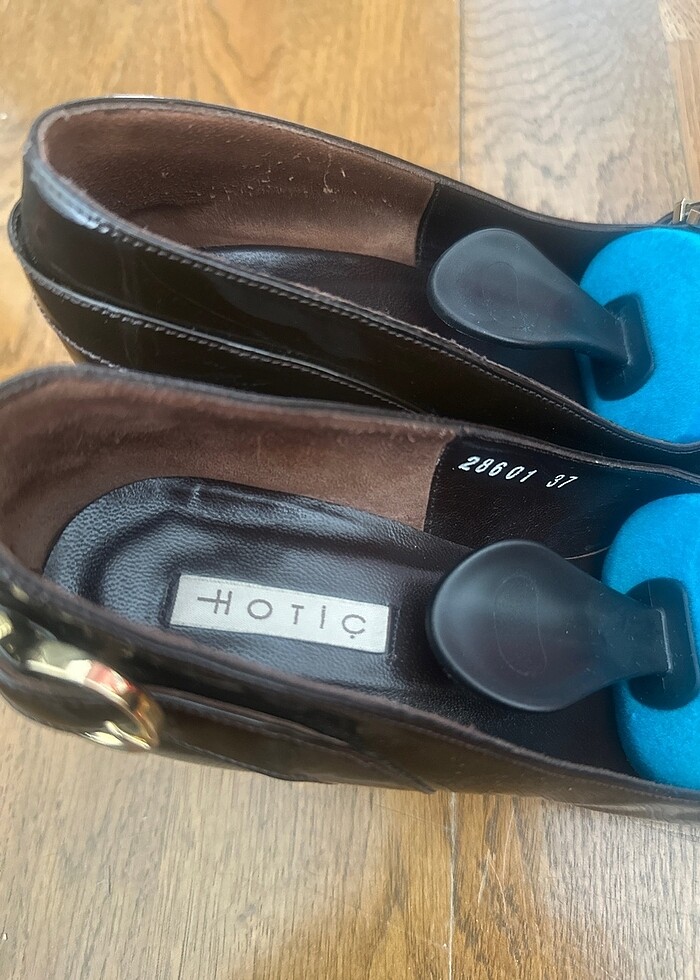 Rugan koyu kahve toka detayları olan şık ayakkabı