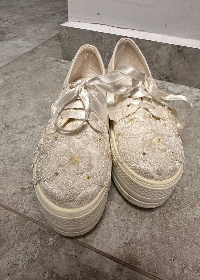 Gelinlik altına beyaz, dantelli gelinlik ayakkabısı. Sadece düğününde giyidim. 37 numara