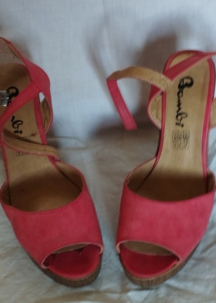 Bilekten bağlamalı 13 cm yüksekliğinde topuklu son iki resimde görüldüğü gibi iç bantlarda hafif soyulma mevcut ve iç tarafında hafif çizik var fiyata yansıttım