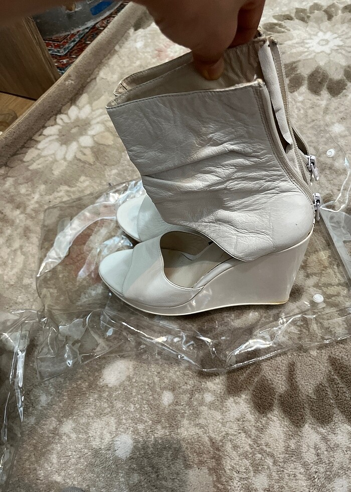 Platform topuklu arkası fermuarlı ayakkabı