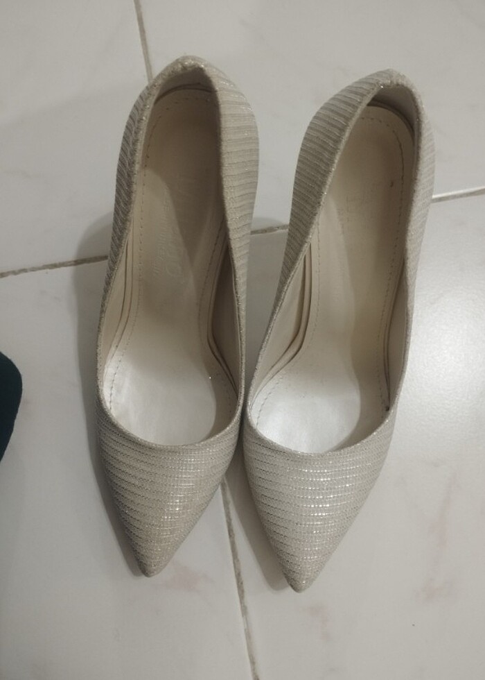 Milano marka ayakkabı. 37 numara. Sadece bir iki defa giyildi. Düğünüm için almıştım onun dışında hiç giymedim. Rengi krem.