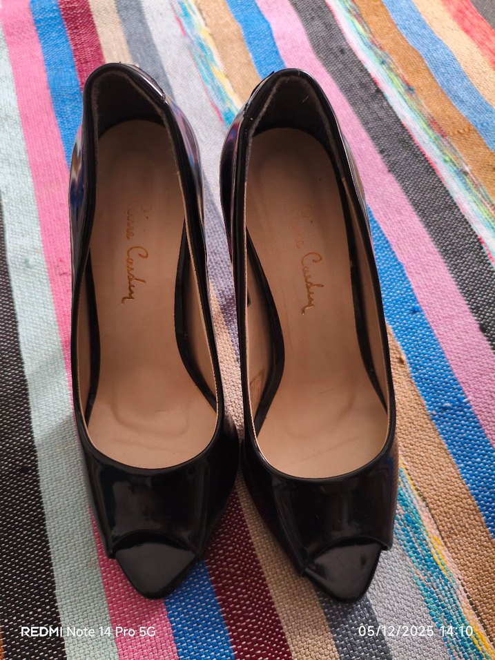 Kadınlar için siyah, koyu parlak stiletto. Lastik tabanlı, tokalı ve Paris esintili günlük kullanıma uygun. göründüğü gibidir inceleyip alınız iade kabul yok