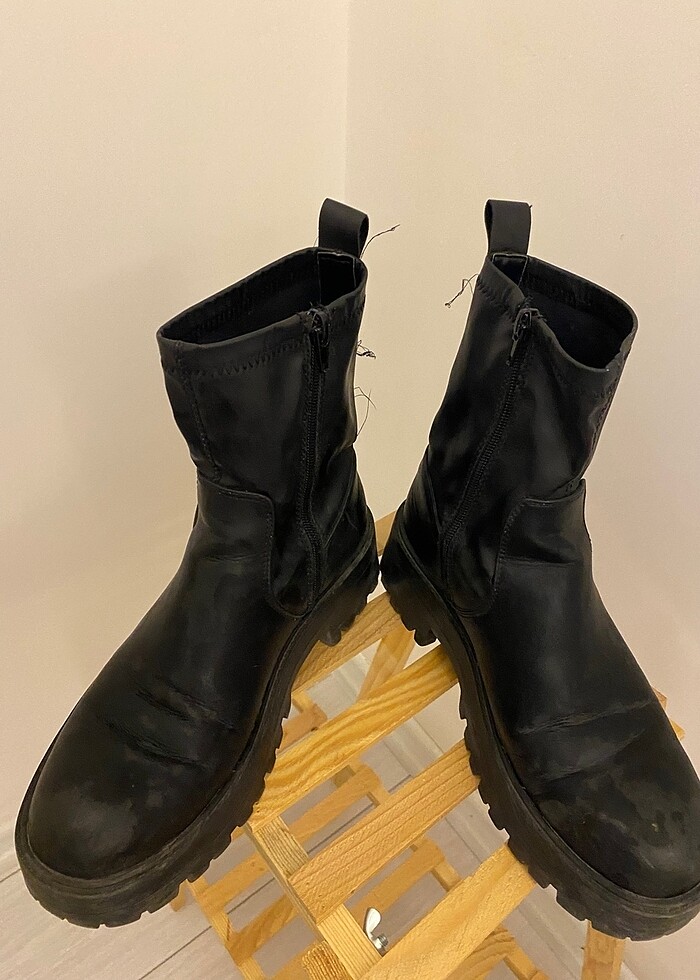 Yanlardan çok az derisi soyuldu çok kaliteli topuk boyu 4-5 cm yandan fermuarlı başka defosu yok