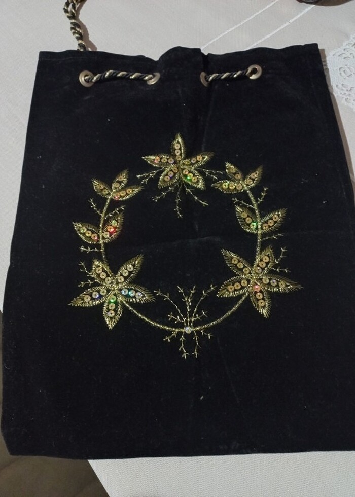 Ev ayakkani terlik cantasi.kat izleei vardir sadece saglamdir hic kullanilmadi uzun suredir baza altindadir. Sari ve gumus pul islemelidir siyahtir