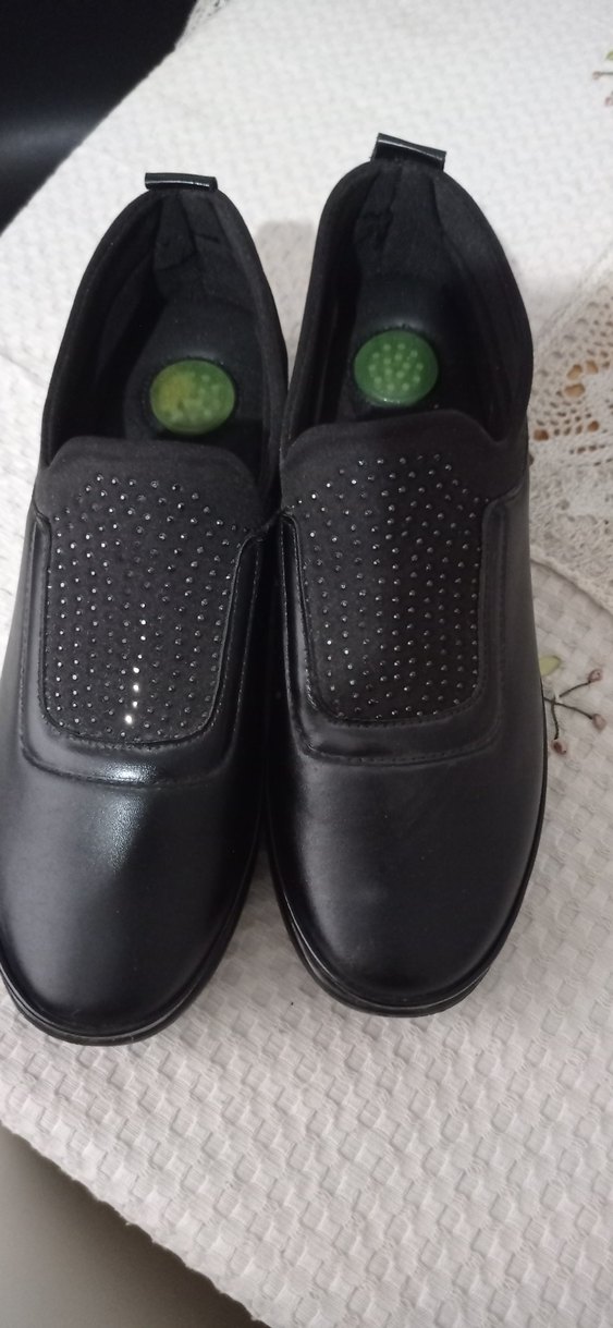 Düğmeli tasarıma ve dolgu topuklara sahip siyah kadın günlük ayakkabısı, düz yüzeyli ve rahat kullanımlık.