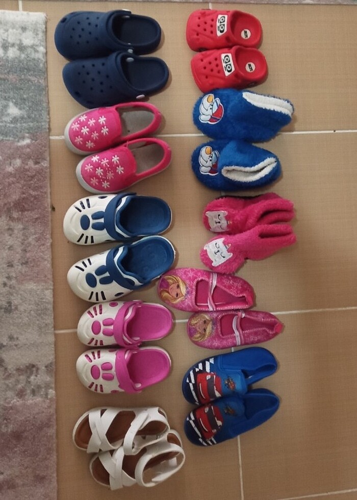 Farklı numaralarda kız erkek çocuk terlik ayakkabı ve panduf