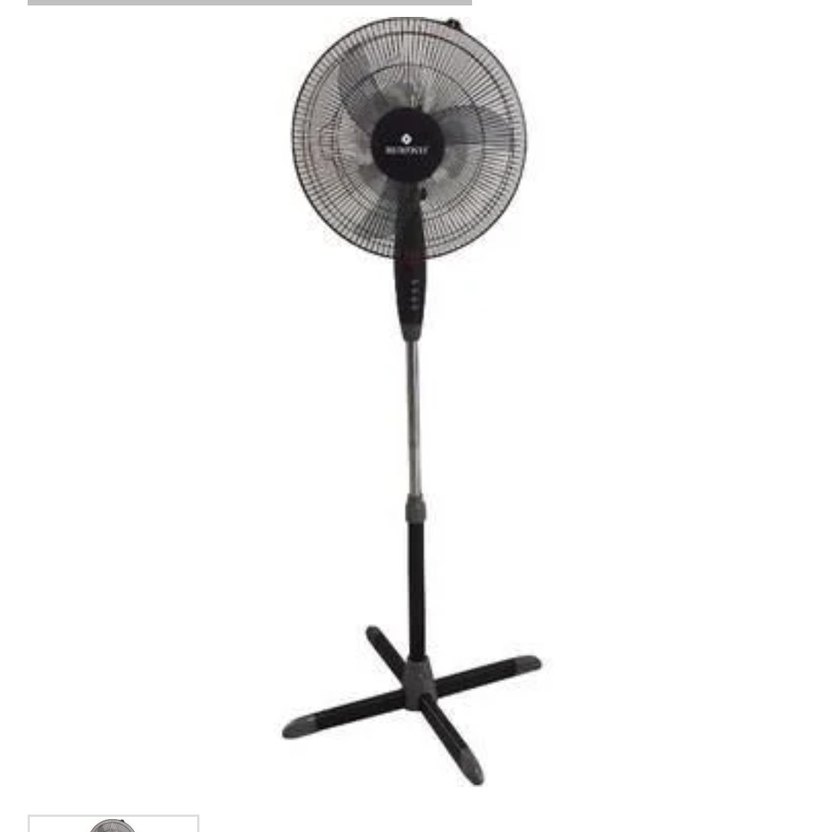 Ayarlanabilir yükseklik ve çoklu hız ayarlarına sahip siyah gri renkli ayaklı vantilatör.
