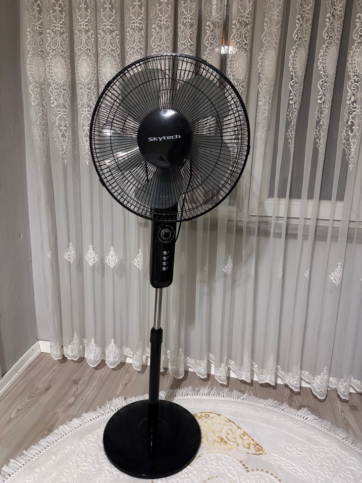 Ayarlanabilir yükseklik ve çoklu hız ayarlarına sahip siyah Skytech ayaklı vantilatör, sağlam taban ve koruyucu ızgara ile güvenli kullanım sağlar. BİR KERE KULLANILMIŞTIR.. İHTİYAÇ FAZLALIĞINDAN DOLAYI SATILIKTIR. KUTUSU MEVCUTTUR..