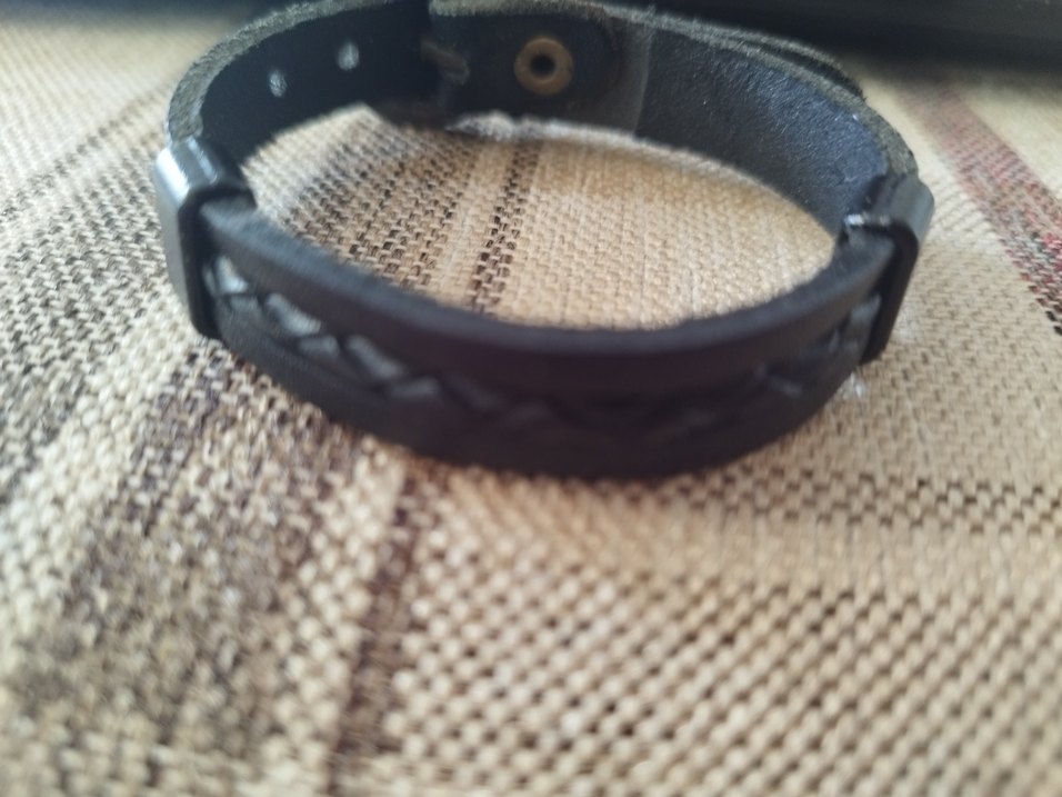 Deri bileklik, sade örgülü detay ve ayarlanabilir çıtçıt kapama ile minimalist bohem tarzı yansıtıyor.